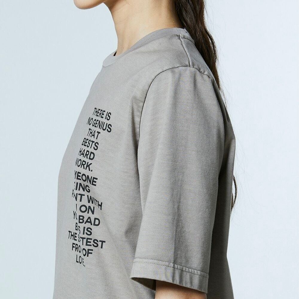 バックにあしらったヴィンテージテイストのフラワーモチーフが、女性らしい柔らかな印象を添えるTシャツ。肌なじみの良いコットン100%素材を使用し、快適な着心地に仕上げました。カラーはやさしく馴染むベージュを採用。シンプルながらもさりげないデザインが映え、デイリーからきれいめまで幅広いシーンで重宝する一枚です。